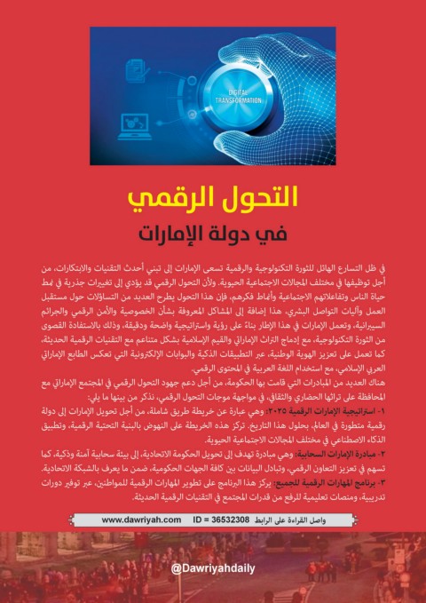 -1استراتيجية الإمارات الرقمية :2025وهي عبارة عن خريطة طريق شاملة ،من أجل تحويل الإمارات إلى دولة