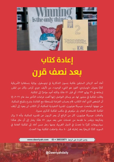 إرجاعه في 26يوليو ،1973أي قبل 51عا ًما ،ولكنه أعيد مؤخ ًرا إلى المكتبة.
