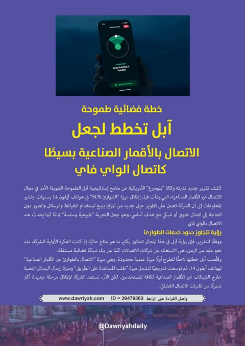 الاتصال عبر الأقمار الصناعية ،التي بدأت قبل إطلاق ميزة “الطوارئ ”SOSفي هواتف آيفون 14بسنوات .وتشير