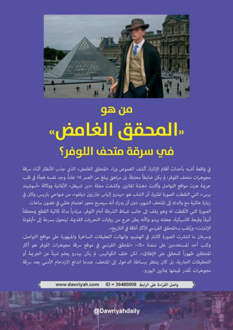 مجوهرات متحف اللوفر؛ لم يكن ضابطاً محترفاً ،بل مراهق يبلغ من العمر 15عاماً ،وجد نفسه فجأة في قلب